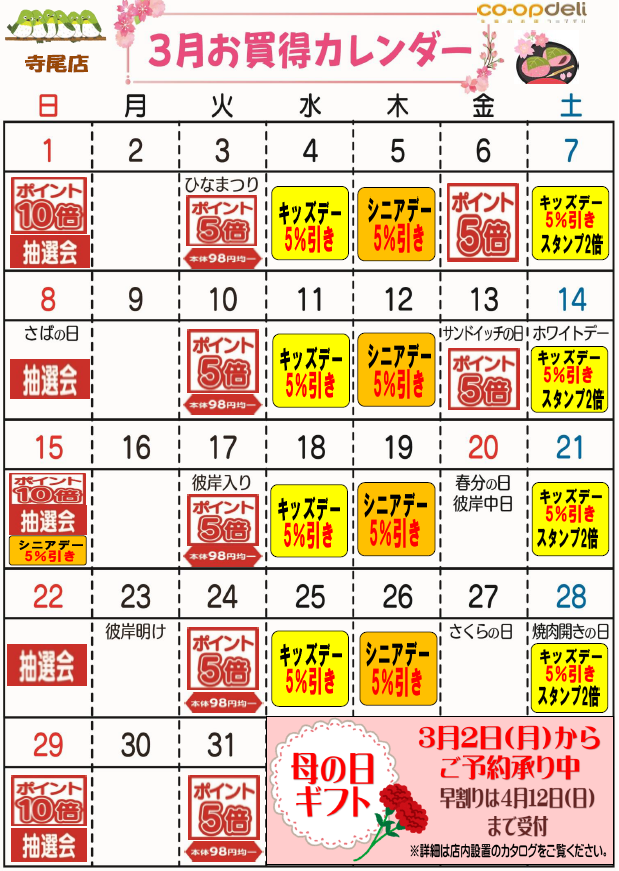 ☆3月お買得カレンダー(寺尾店)