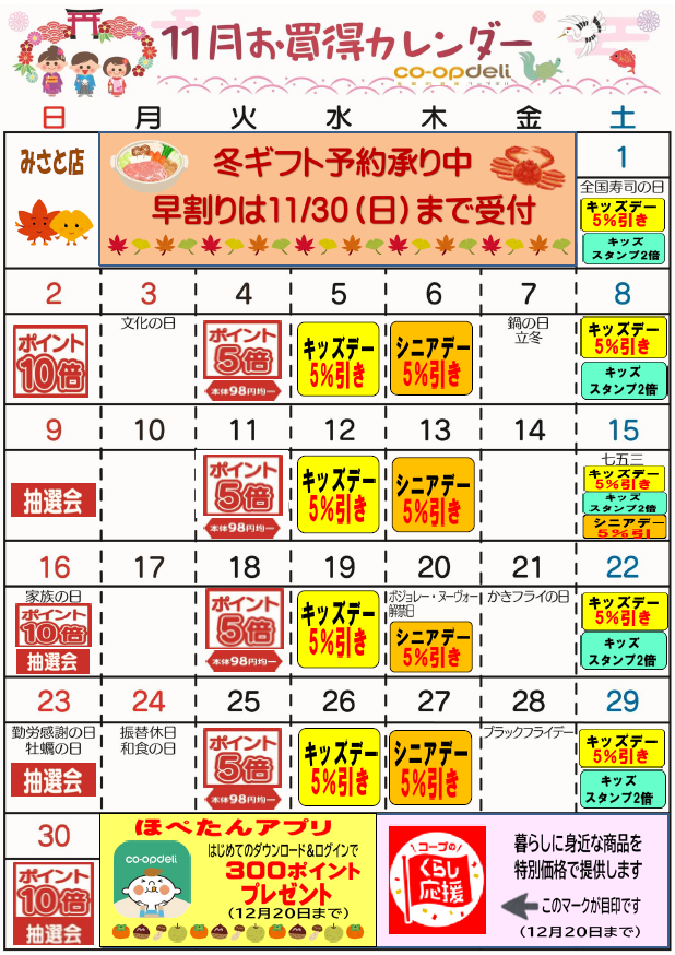 ☆11月お買得カレンダー(みさと店)