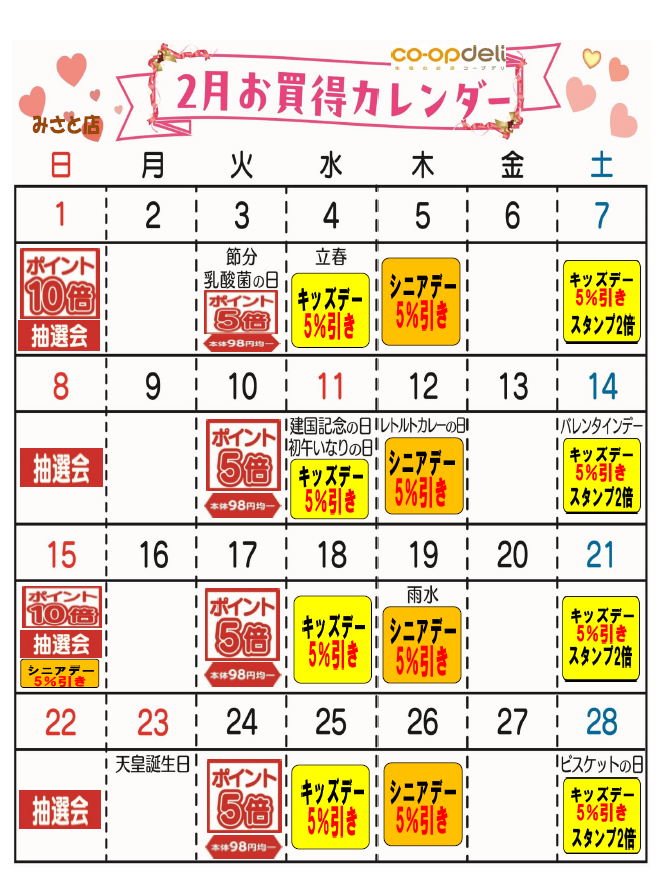 ☆2月お買得カレンダー(みさと店)