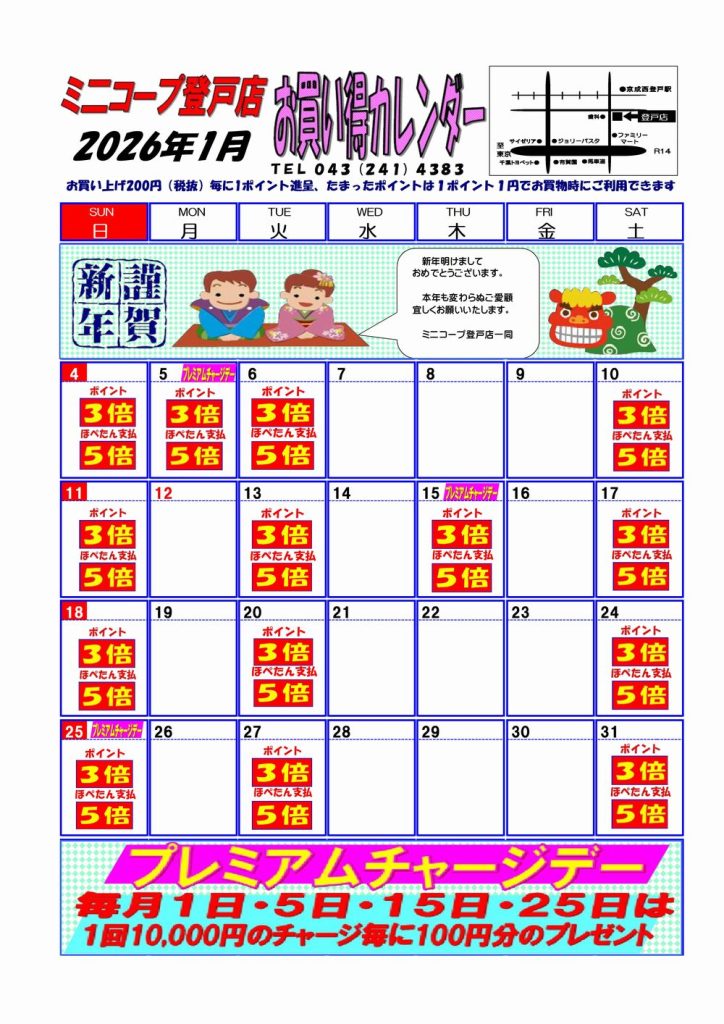 ☆ミニコープ登戸店☆1月お買い得カレンダー