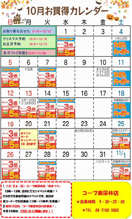 10/26(日)は「コープ東深井店 秋まつり」を10時~13時迄開催します。