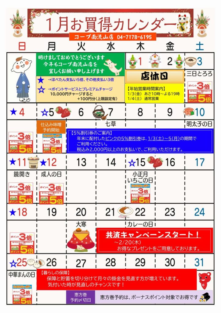旧年中は、コープ南流山店をご利用いただきまして誠にありがとうございました。