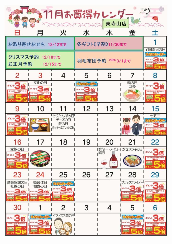 ☆11月お買得カレンダー(東寺山店)