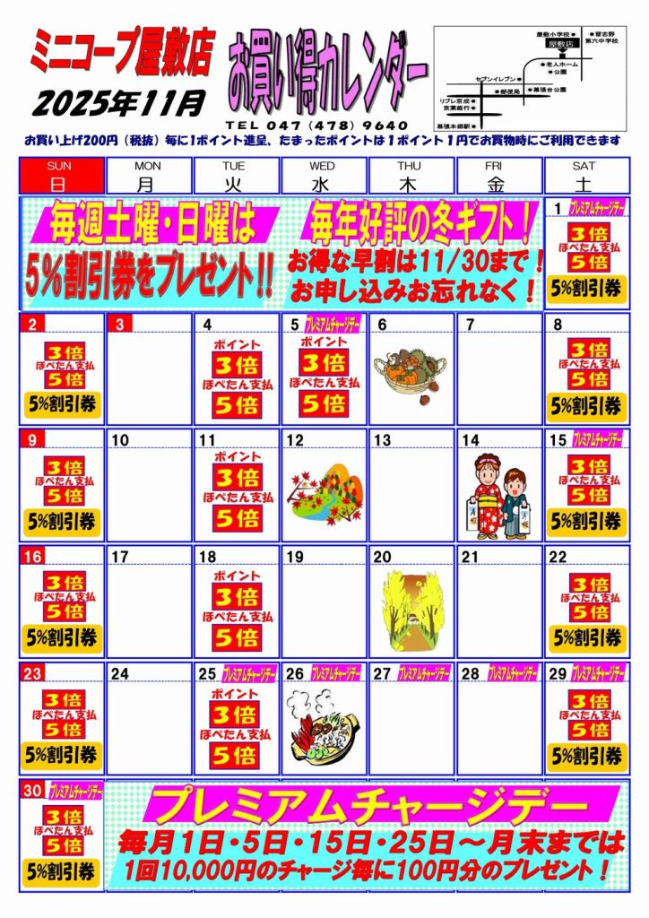☆ミニコープ屋敷店☆11月お買い得カレンダー