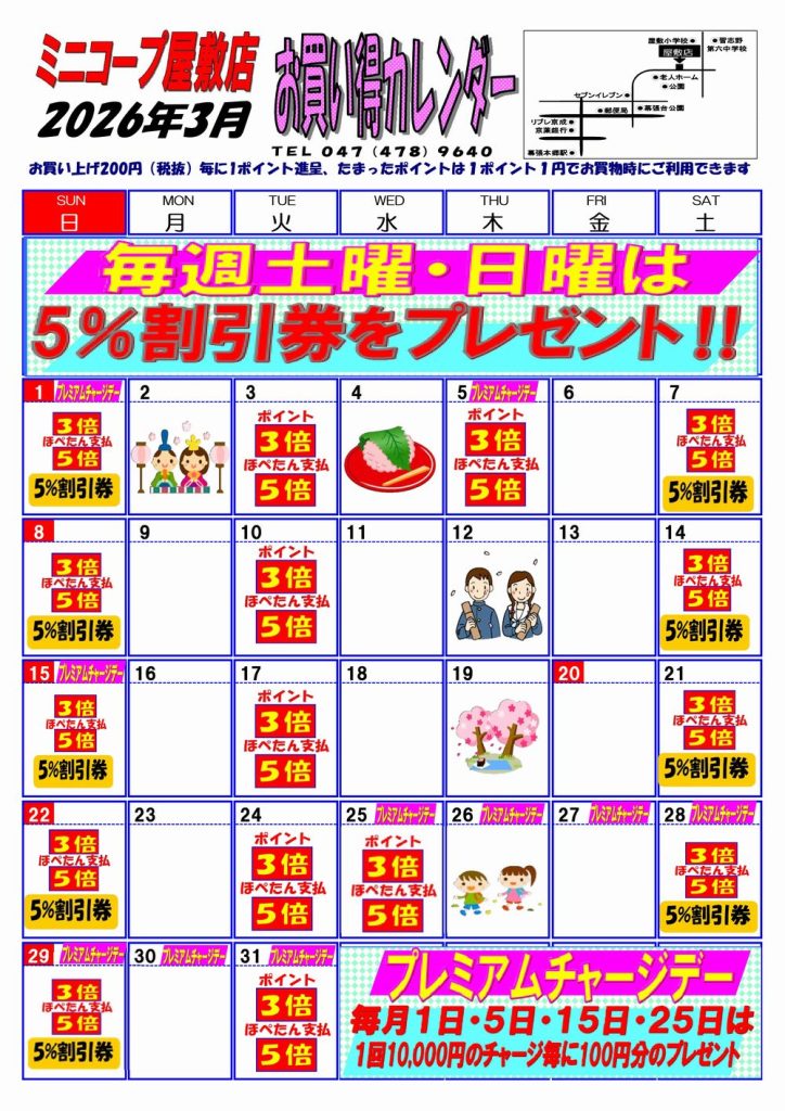 ☆ミニコープ屋敷店☆3月お買い得カレンダー
