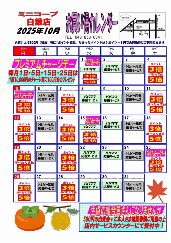 ☆ミニコープ白鍬店☆10月お買い得カレンダー