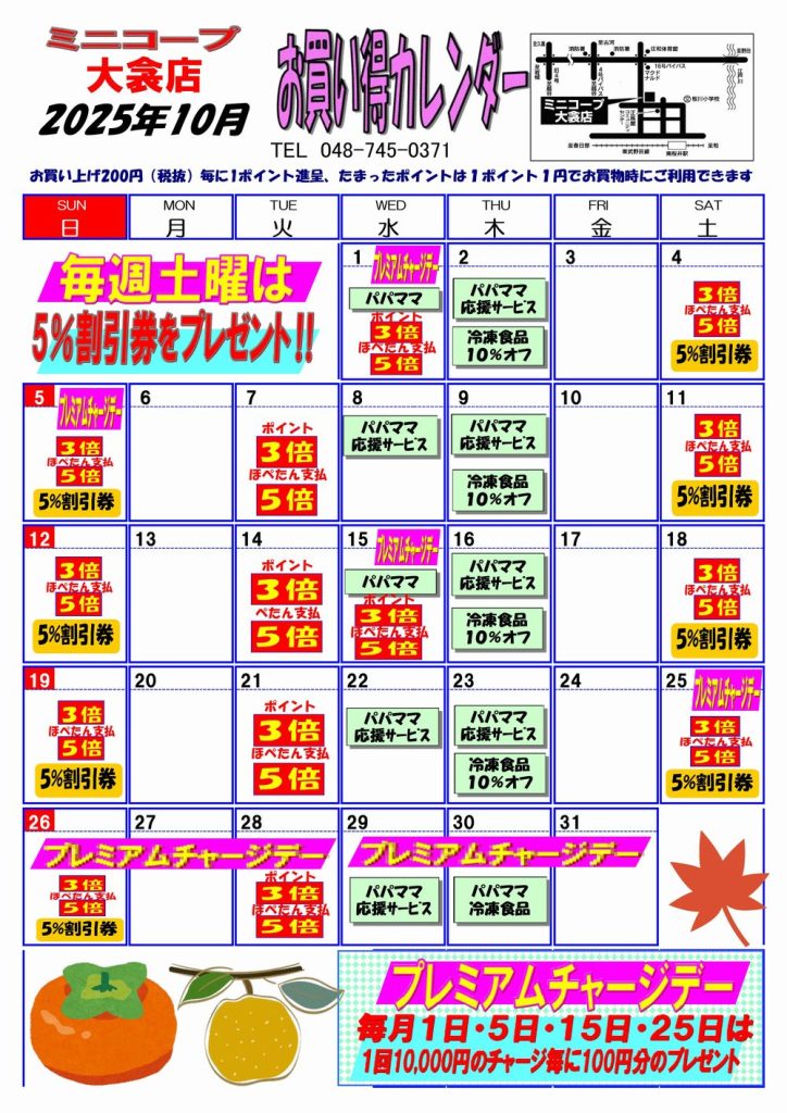 ☆ミニコープ大衾店☆10月お買い得カレンダー