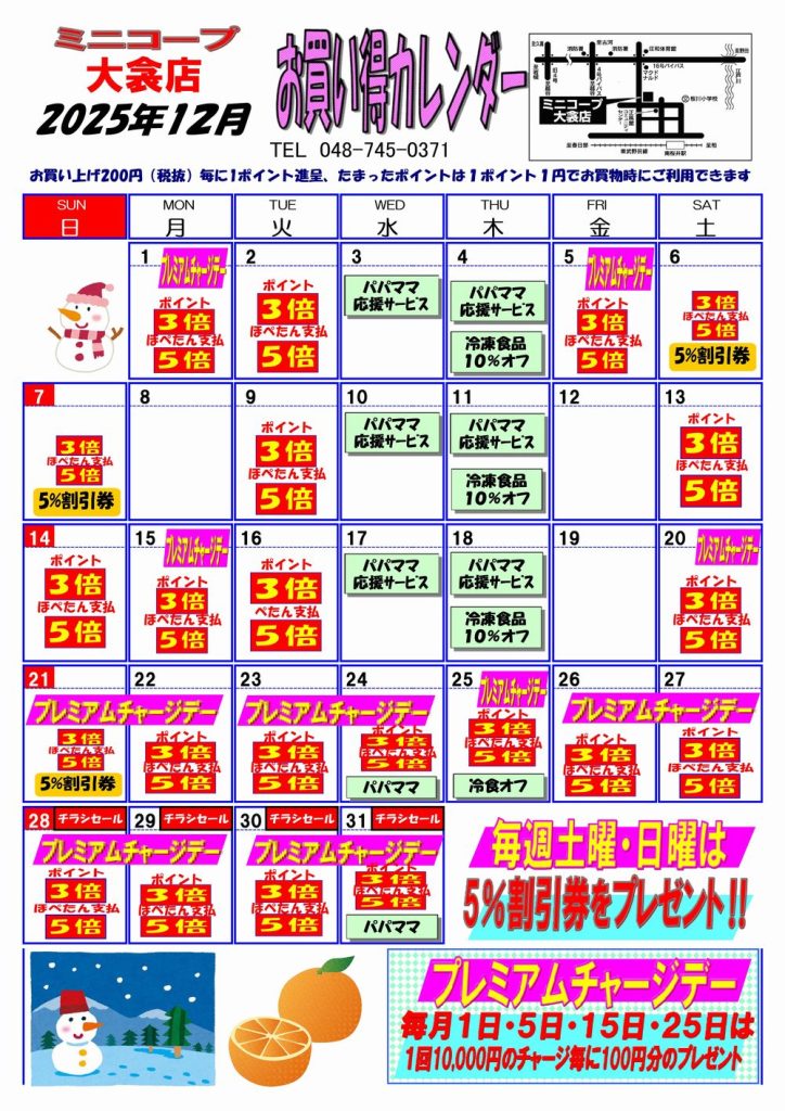 ☆ミニコープ大衾店☆12月お買い得カレンダー