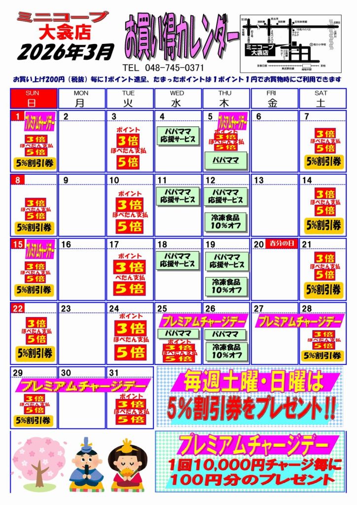 ☆ミニコープ大衾店 ☆3月お買い得カレンダー