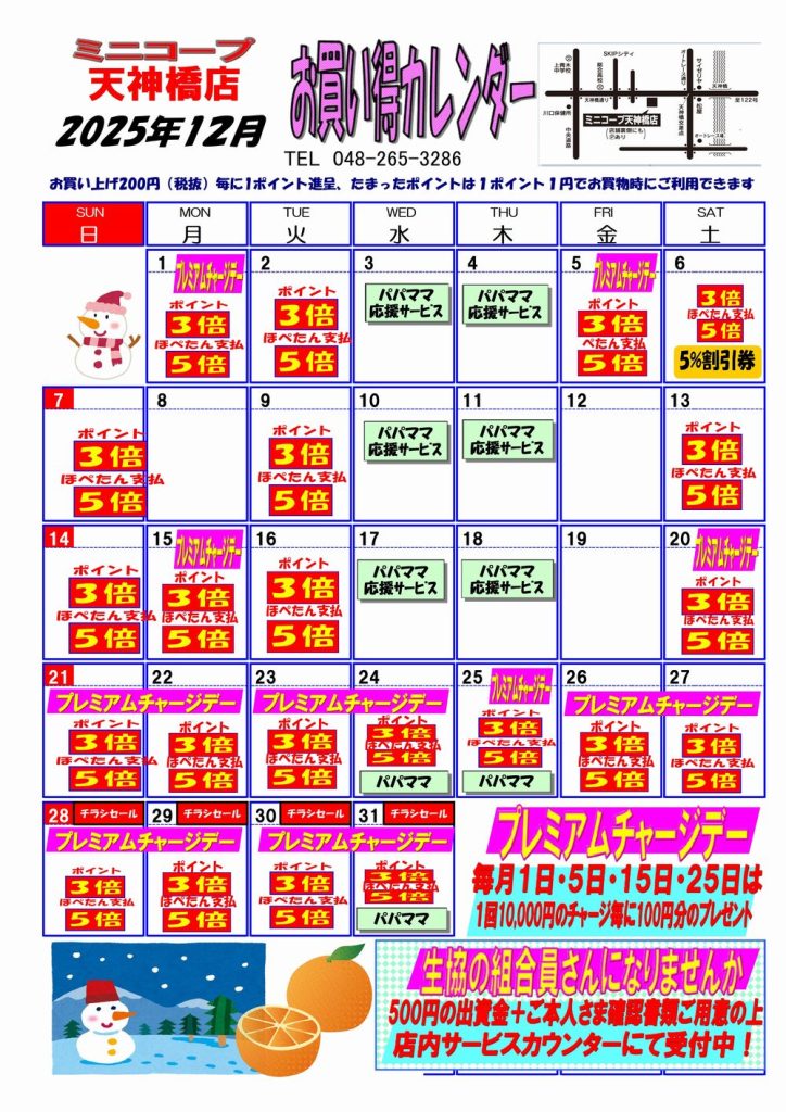 ☆ミニコープ天神橋店☆12月お買い得カレンダー