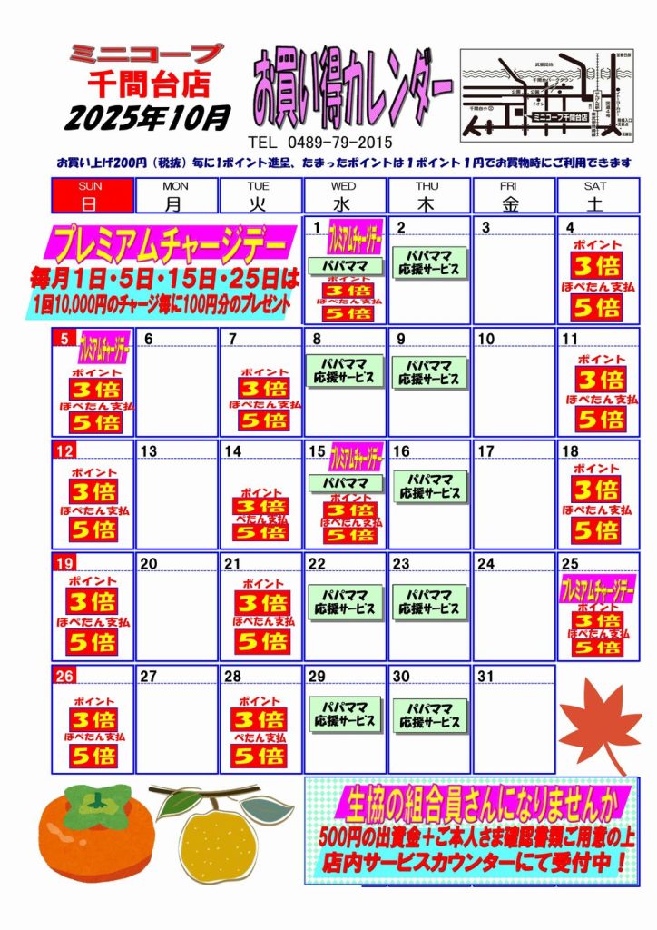☆ミニコープ千間台店☆10月お買い得カレンダー