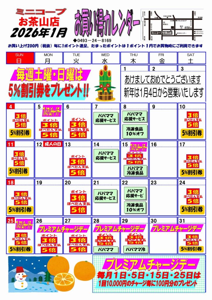 ☆ミニコープお茶山店☆1月お買い得カレンダー