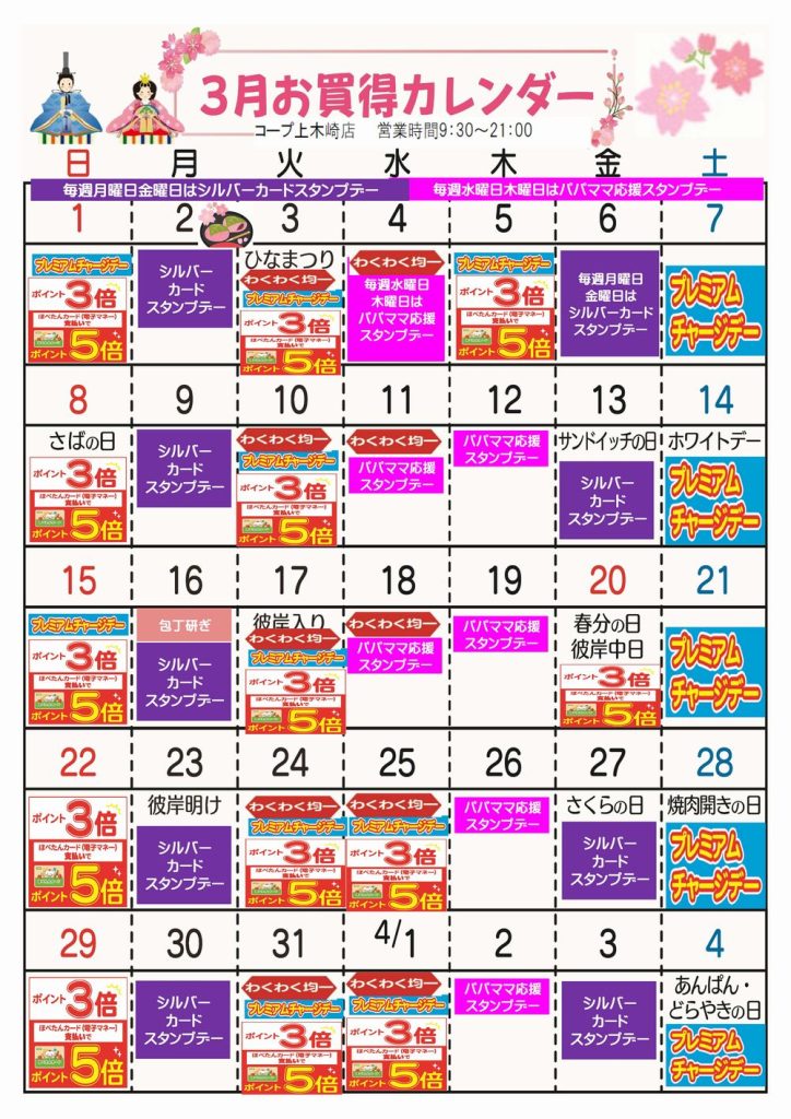 コープ上木崎店 3月のお買得カレンダーのご案内です ♪