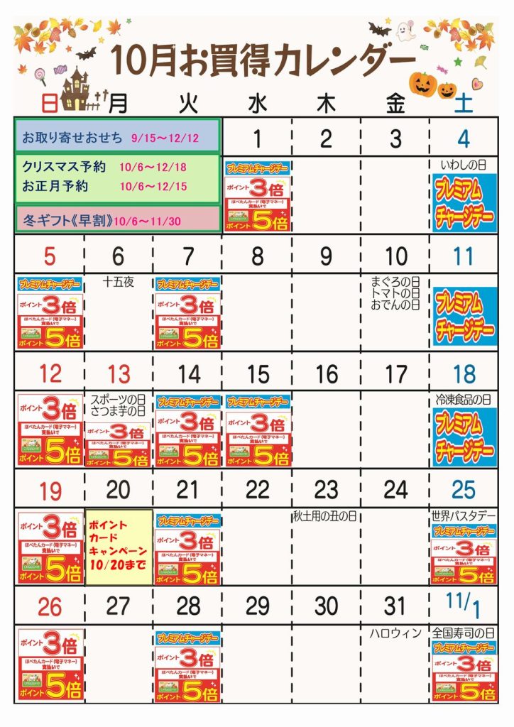 ☆10月お買得カレンダー(みずほ台店)