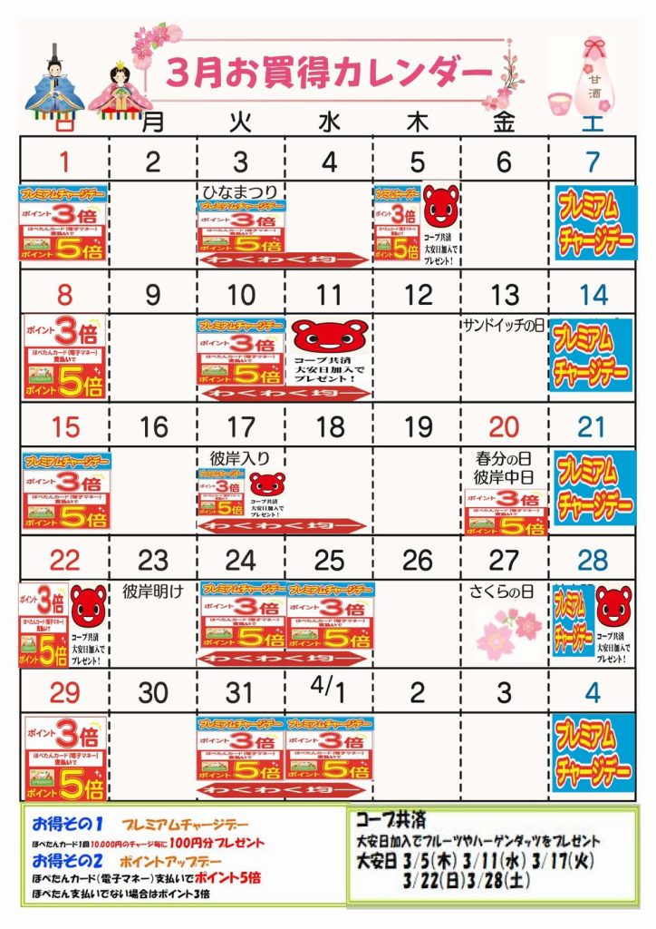 ☆3月お買得カレンダー(幸町店)