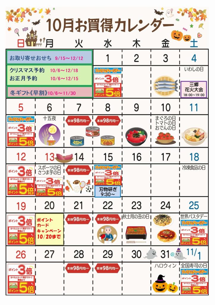 ☆10月お買得カレンダー(早稲田店)