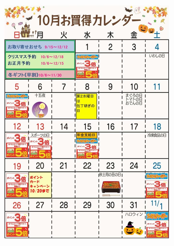 ☆10月お買得カレンダー(北越谷店)