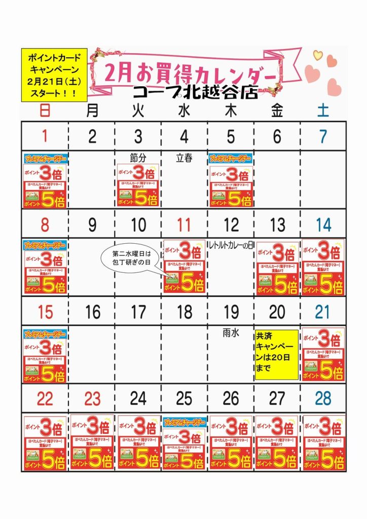 ☆2月お買得カレンダー(北越谷店)