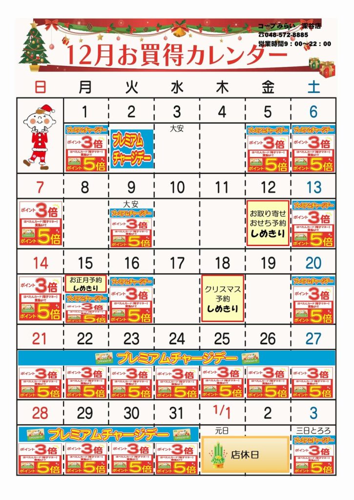 ☆12月お買得カレンダー(深谷店)