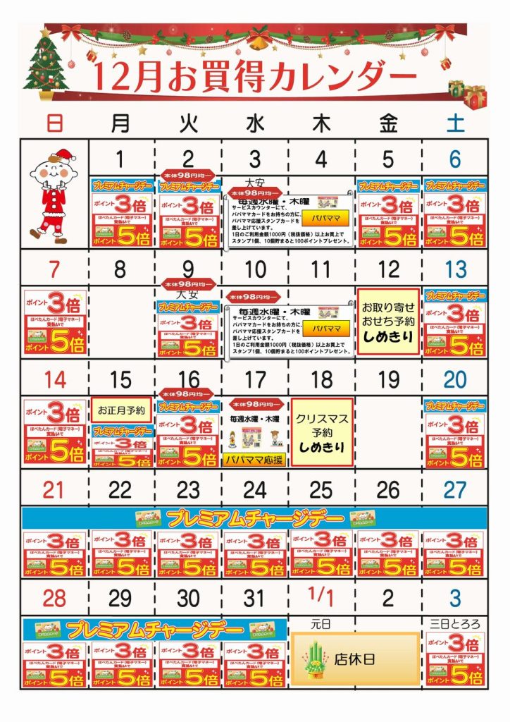 こんにちは!コープ狭山台店12月のお買得カレンダーです。