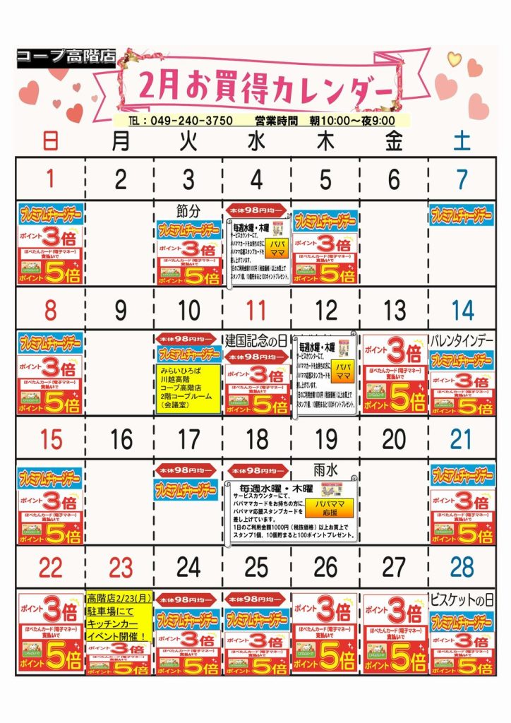 ☆2月お買得カレンダー(高階店)