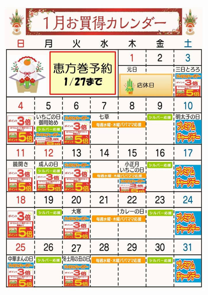 ☆1月お買得カレンダー(浦和東店)