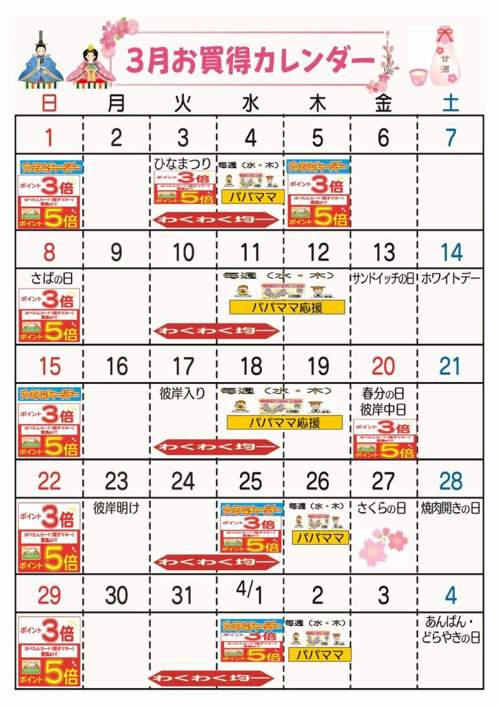 3月のお買得カレンダーをご用意いたしましたのでお役立てください。