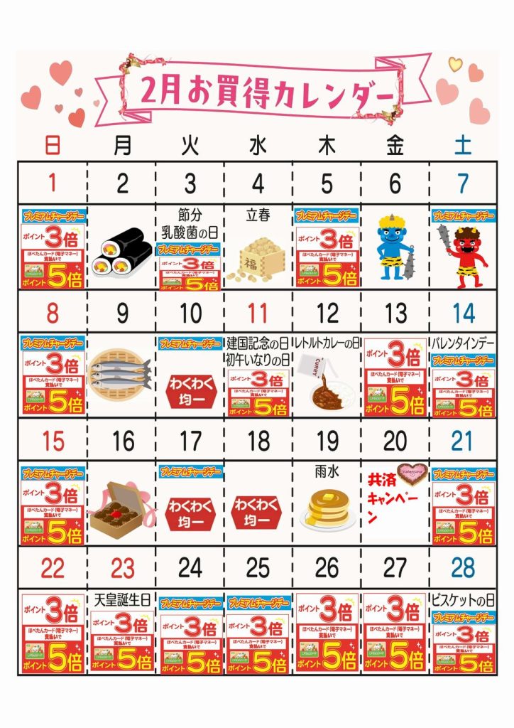 ☆2月お買得カレンダー(武蔵浦和店)