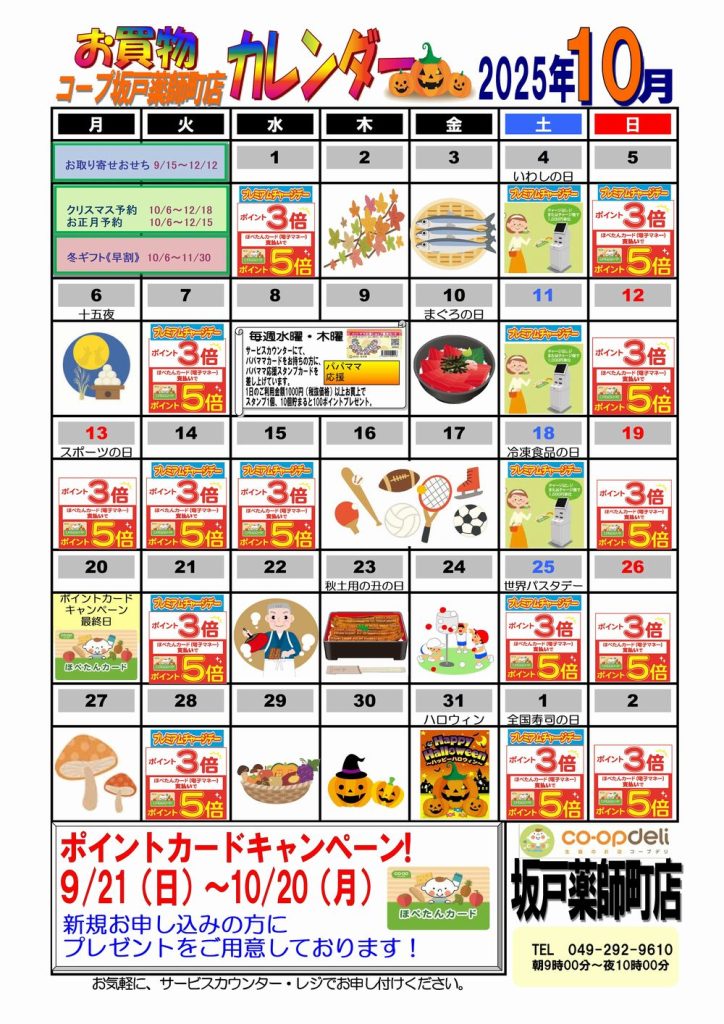☆コープ坂戸薬師町店 10月お買物カレンダー