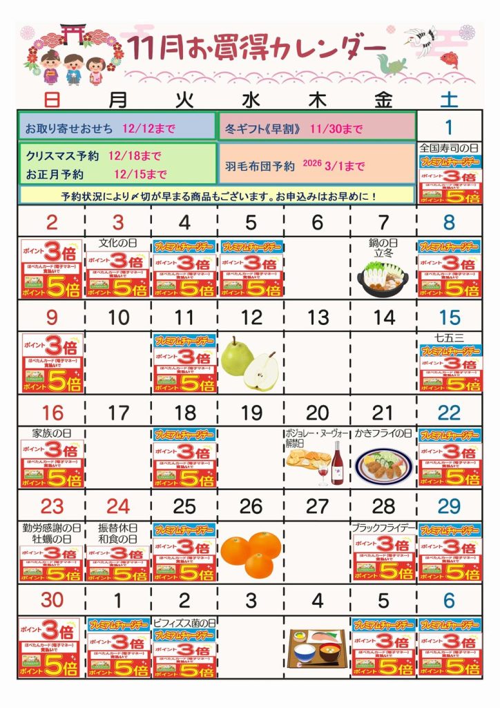☆11月お買得カレンダー(川口西店)