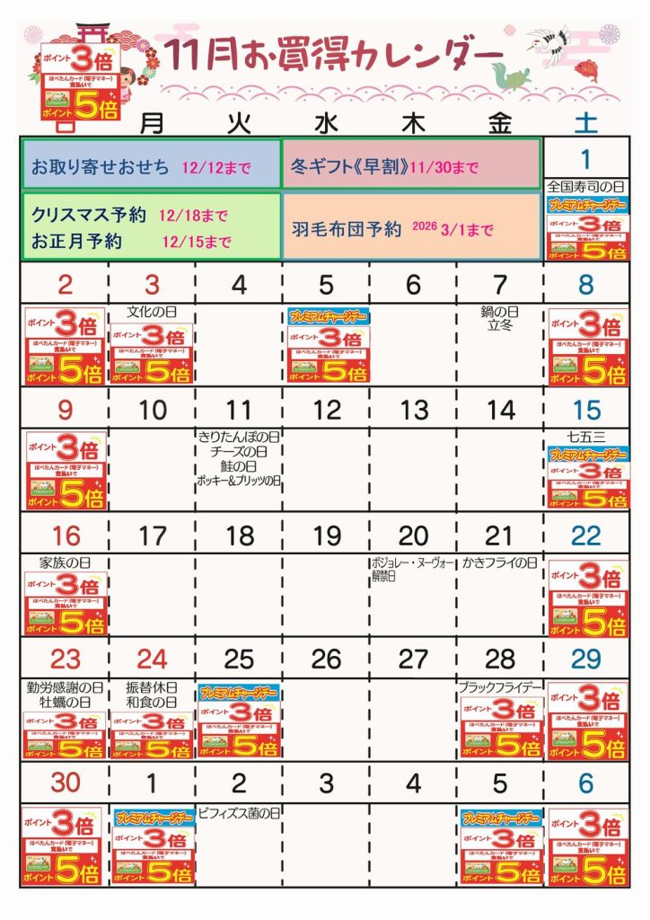 ☆11月のお買得カレンダーのご案内♪(田端店)