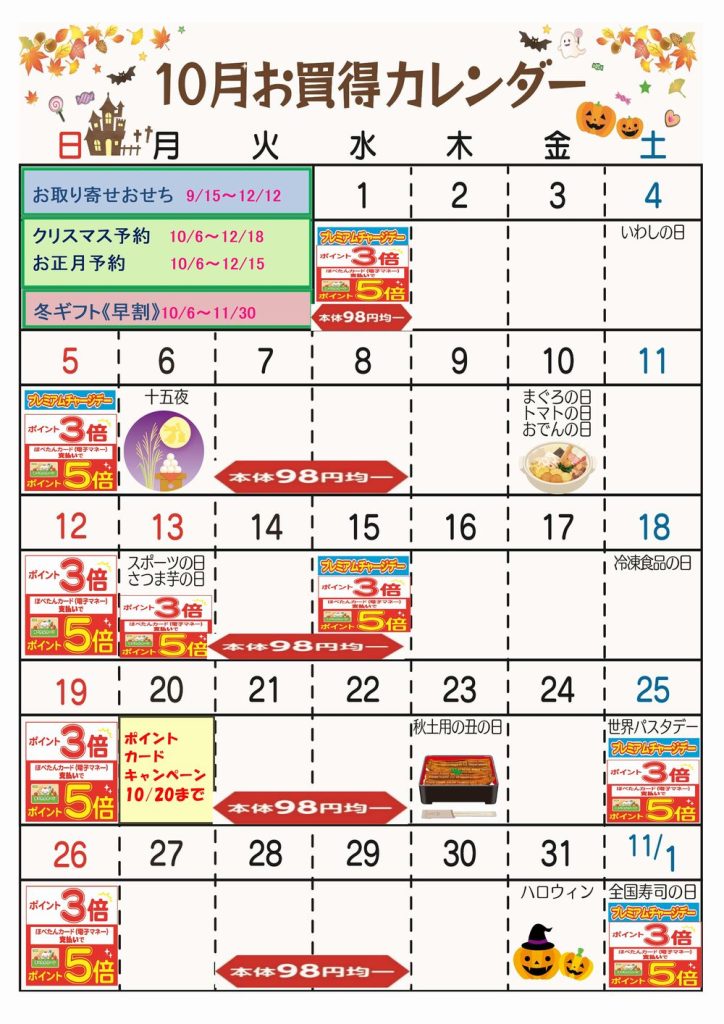 ☆10月お買得カレンダー(小金井ぬくい坂下店)
