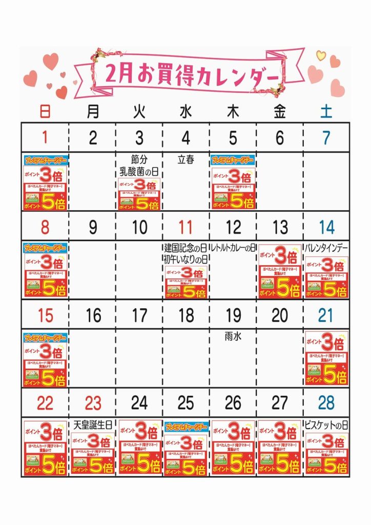 ☆コープ亀有店 2月お買い得カレンダー