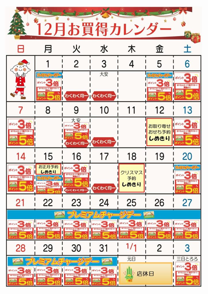 こんにちは。 コープみらい北野台店の12月のお買得カレンダーです。