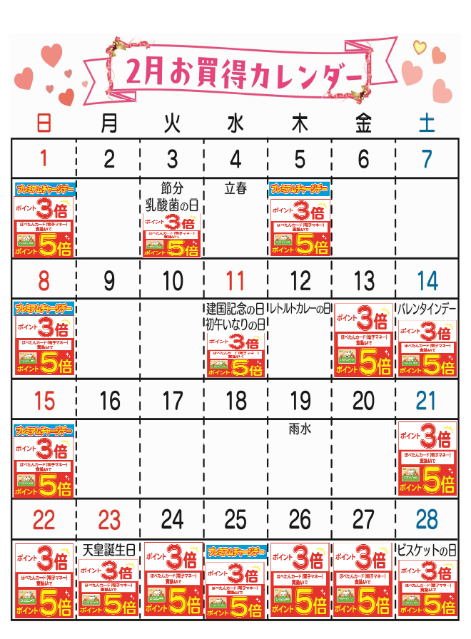 ☆2月お買得カレンダー(ときわ店)