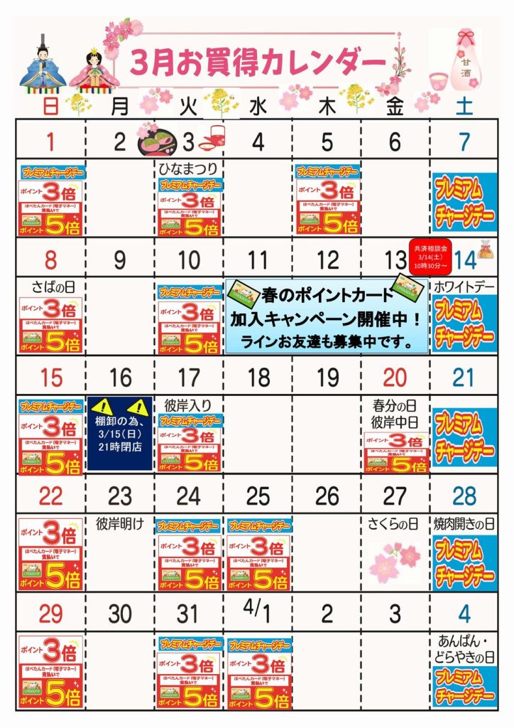 ☆3月お買得カレンダー(上井草店)