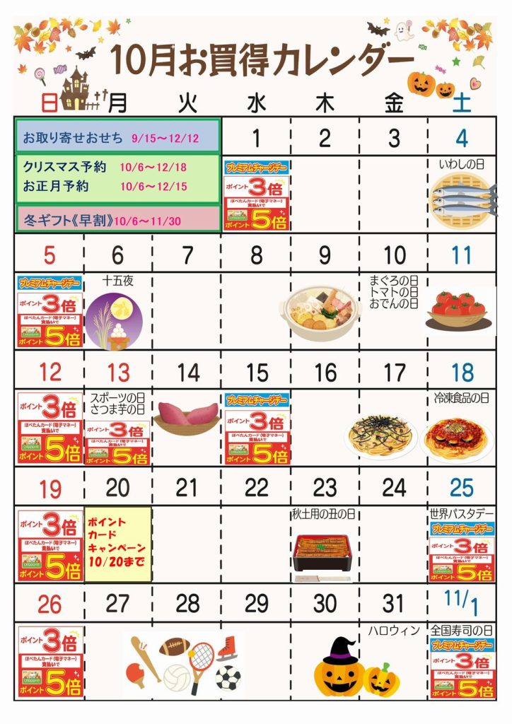 ☆10月お買得カレンダー(花小金井店)