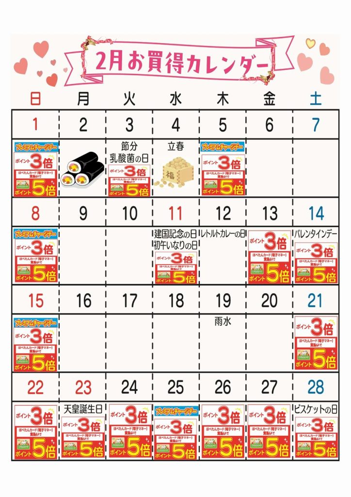 ☆2月お買得カレンダー(花小金井店)