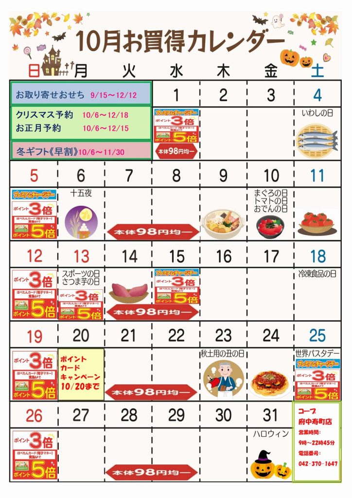 コープみらい府中寿町店の10月お買得カレンダーです。