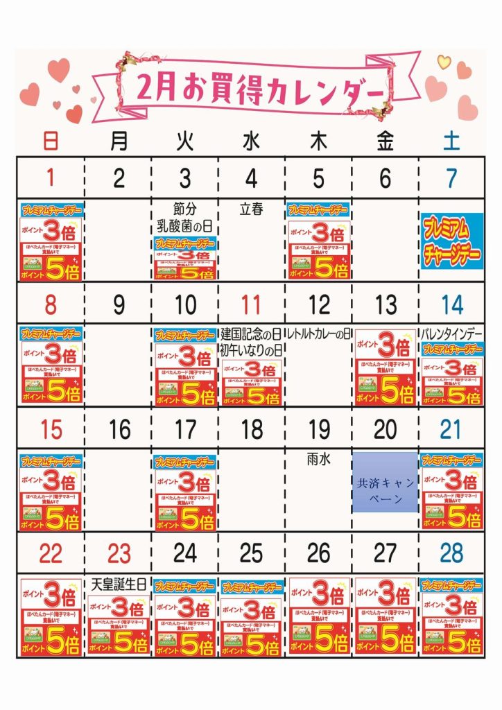 ☆2月お買得カレンダー(中野鷺宮店)