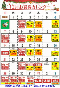 ☆12月お買得カレンダー(昭和店)