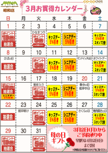 ☆3月お買得カレンダー(昭和店)
