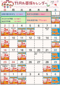 ☆11月お買い得カレンダー・共済お楽しみ企画(東深井店)