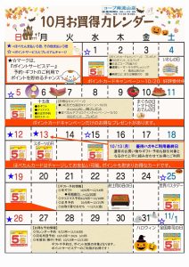 ☆10月お買得カレンダー(南流山店)