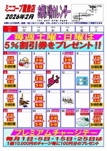 ☆ミニコープ屋敷店 ☆2月お買い得カレンダー