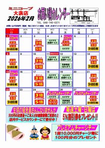 ☆ミニコープ大衾店 ☆2月お買い得カレンダー