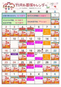 ☆11月お買得カレンダー(上木崎店)