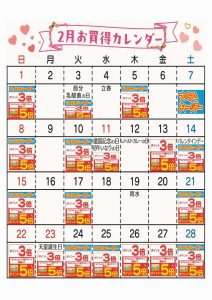 ☆2月度お買得カレンダー(みずほ台店)