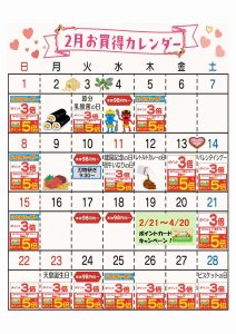 ☆2月お買得カレンダー(早稲田店)