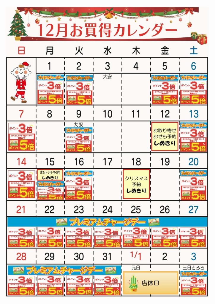 ☆12月お買得カレンダー(北本店)